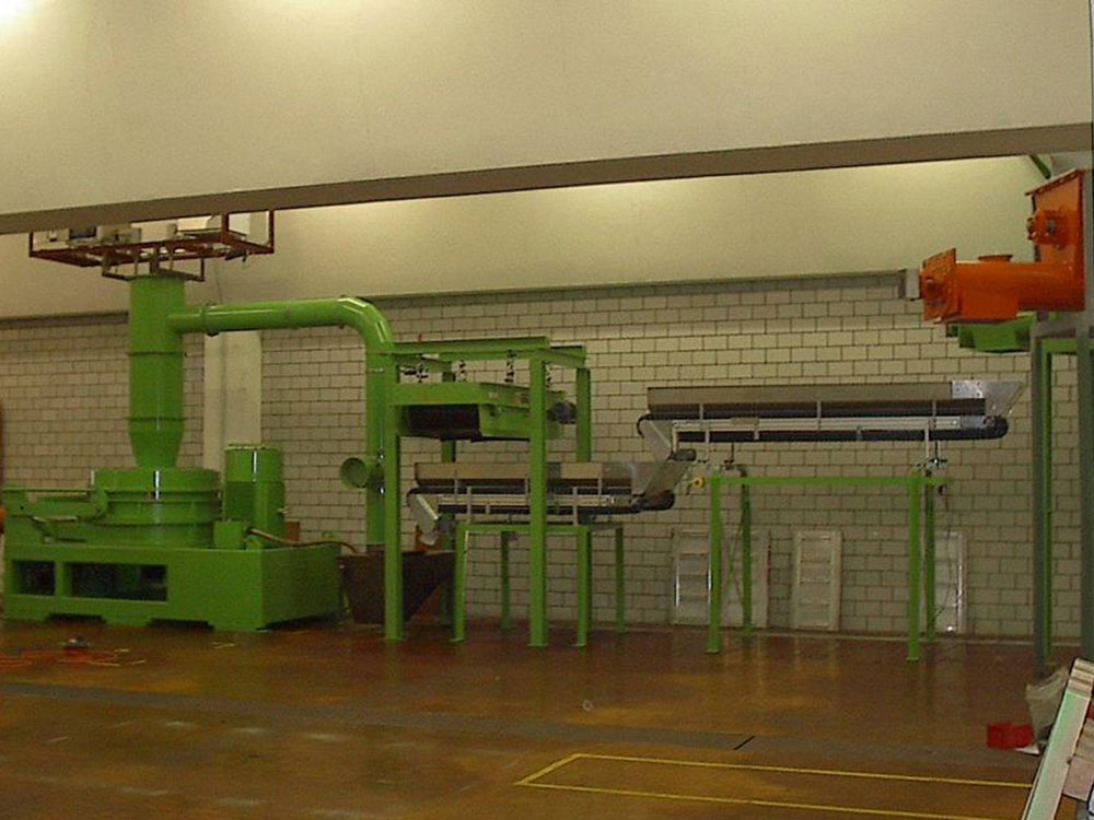 Wir liefern bei Bedarf nicht nur die Mühle sondern das komplette Aufbereitungssystem inkl Materialannahme und Vorzerkleinerung, sowie Brandschutz-Additivzugabe.