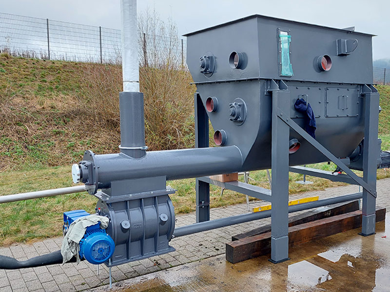 Zur pneumatischen Beschickung eines Feststoffbrenners mit staubförmigem Ersatzbrennstoff haben wir ein Druckfördersystem entwickelt das dem Brenner präzise und absolut gleichmäßig die von der Brennersteuerung angeforderte Materialmenge zudosiert.