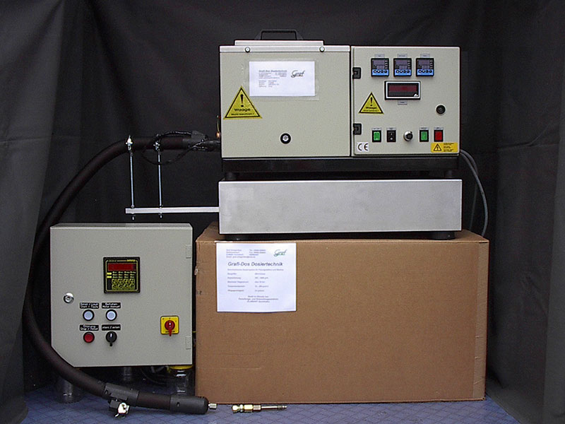 Um Wachse und ähnliche Additive in temperierter Form in die Prozesszone von Kunststoffextrudern zugeben zu können haben wir ein Spezialdosiersystem entwickelt das in einem Gerät mehrere Funktionen vereint: Aufschmelzen und Temperieren des Additivs. Verwiegen und Dosieren (Gravimetrische Dosierung) Unter Druck in Prozesszone des Extruders eindüsen.