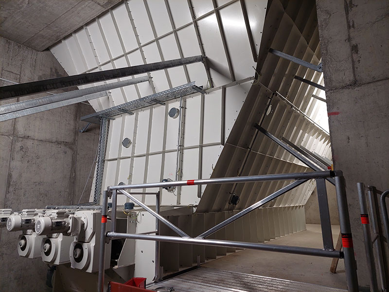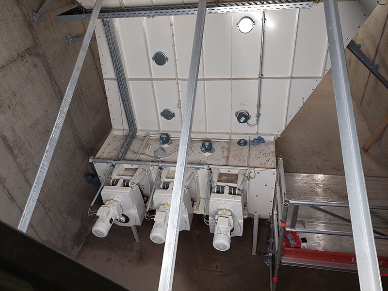 Zum optimalen Betrieb von Mühlen und Windsichtern ist es unbedingt erforderlich diese präzise dosiert zu beschicken. Unser Dosierschnecken mit spezieller Schneckengeometrie sowie Trichtern mit effizienten Rührwerken stellen dies sicher. Teilweise führen wir die Dosiersysteme gravimetrisch also mit Verwiegung aus. Anlagenbeispiel: 120 m3-Tiefbunker für Ersatzbrennstoff