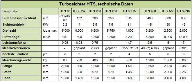 Der Sichter HTS ist speziell für die Sichtung feinster Pulver ausgelegt. Durch die präzise Turbosichtertechnik trennt er Feinpulver nach Korngröße.