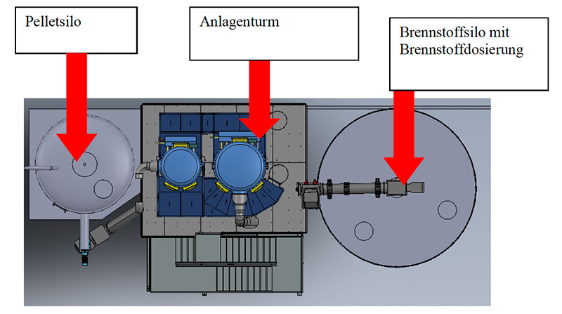 Der Anwender konnte mit einem benachbarten Pellet-Werk günstige Bezugskonditionen aushandeln. Daher sollte die Anlage für Pellets mit der Option einer späteren Erweiterung für andere (gröbere) trockene Holzbrennstoffe konzipiert werden.